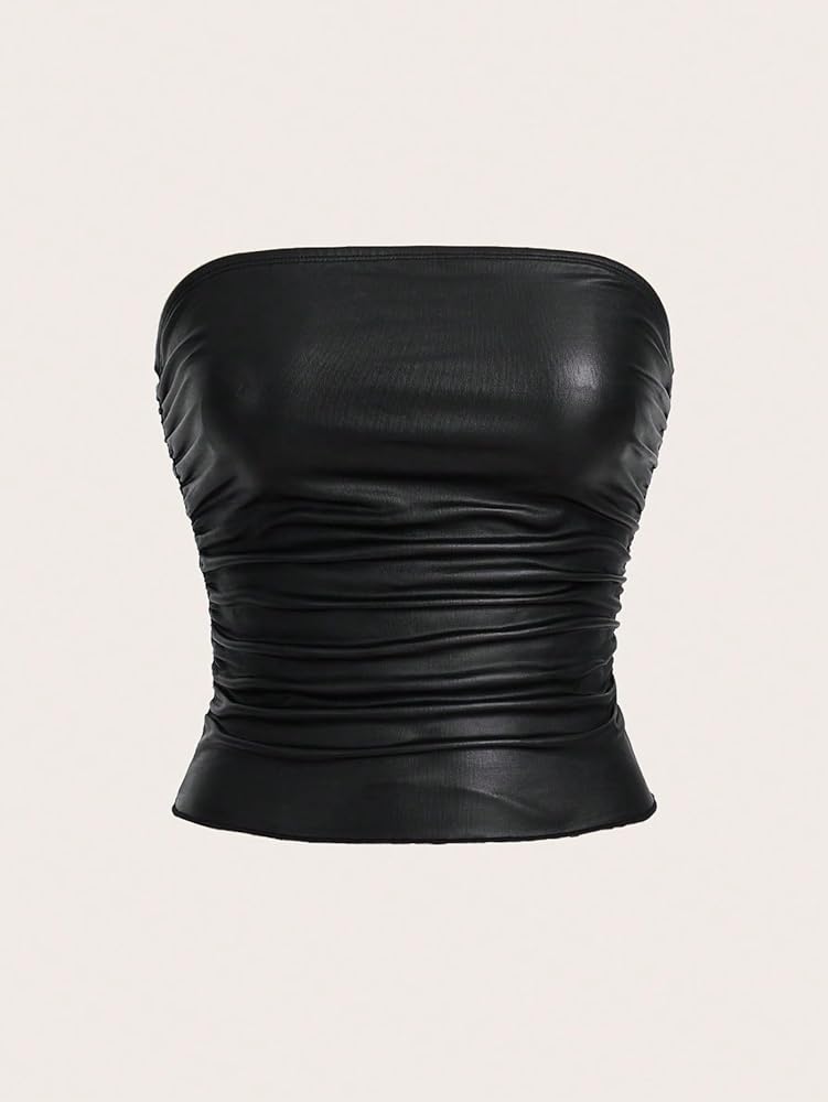 Women's strapless Faux Leather Tops